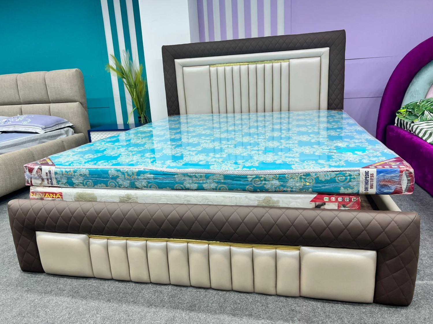 A bed is a piece of furniture used for sleeping or resting. It typically consists of a frame that supports a mattress, which provides comfort and cushioning. Beds often include additional components like a headboard, footboard, and sometimes side rails. Most beds are designed for one or two people and come in various sizes such as single, double, queen, or king. Some beds also have storage space underneath or are designed to fold or convert for multiple uses.